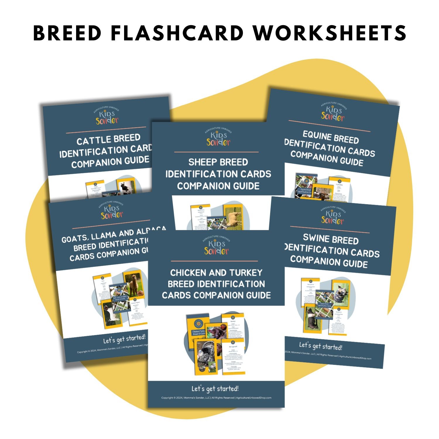 - 6 Sets of Breed Identification Flashcards (Durable, UV-Coated, 3" x 5") — $90 value + Breed Flashcard Companion PDF Worksheets - $42 value