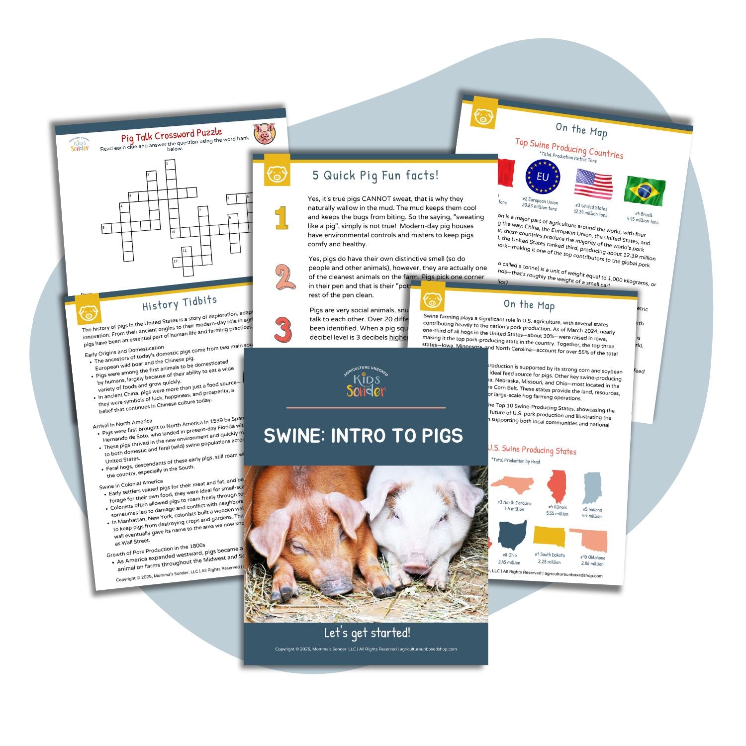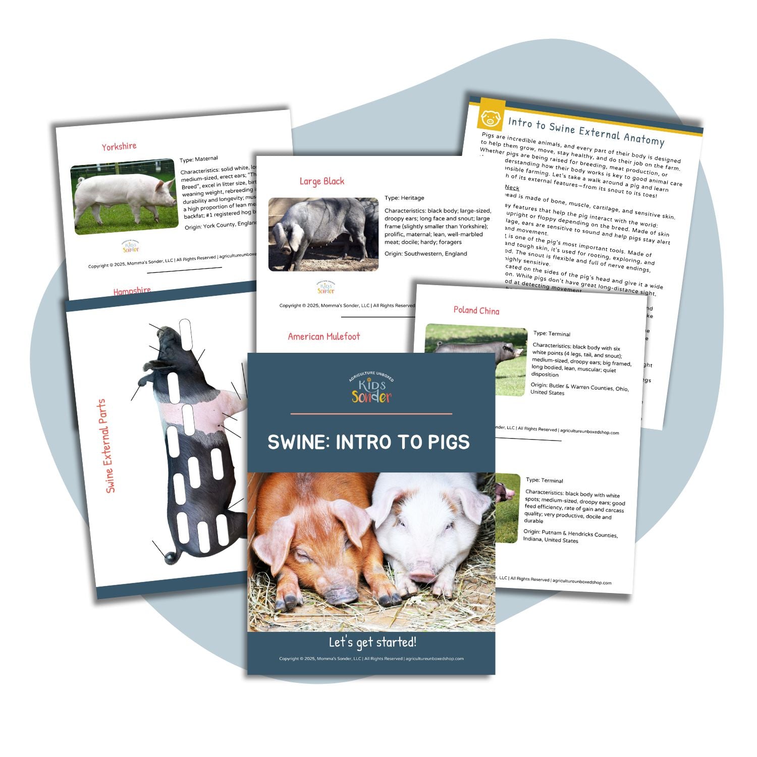 Kids will explore how pigs have shaped agriculture, from their domestication to their vital role in modern pork production. Whether they are just starting out or looking to expand their knowledge, this unit will introduce kids to swine history, terms, external anatomy and breeds.